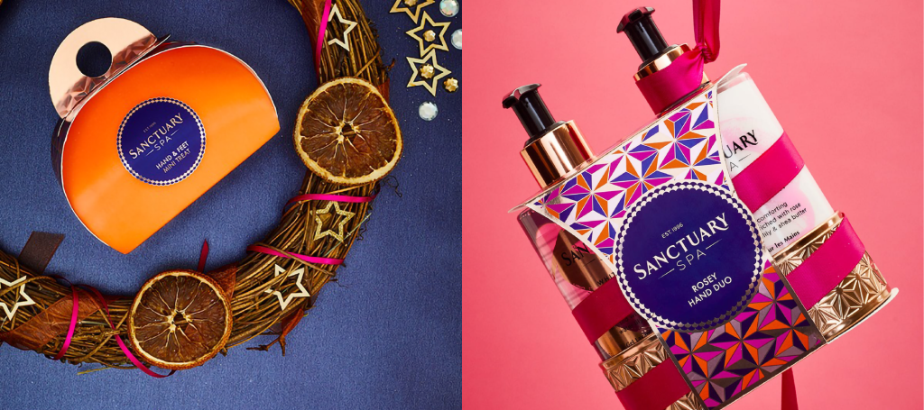 Sanctuary Spa wanted to create two retailer exclusive ranges for Christmas under one collection. To answer this brief, we firstly maintained the colour palette that the brand has adopted over the past three years to aid recognition for consumers when seeing the gifts in new retail and online environments.
